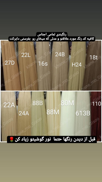 برای سفارش کافیست بعد از ورق زدن عکسها به صفحه کد رنگها برسید سپس کد رنگ مورد علاقه خود را انتخاب کرده و در قسمت سفارش همان کد رنگ را سفارش دهید،حتما نور گوشی خود را زیاد کنید