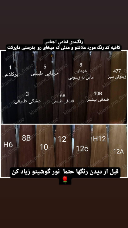 برای سفارش کافیست بعد از ورق زدن عکسها به صفحه کد رنگها برسید سپس کد رنگ مورد علاقه خود را انتخاب کرده و در قسمت سفارش همان کد رنگ را سفارش دهید،حتما نور گوشی خود را زیاد کنید